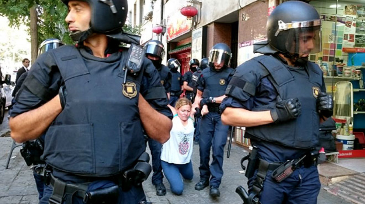 Antidisturbios ARRO de los Mossos en un desahucio en Sants 2016